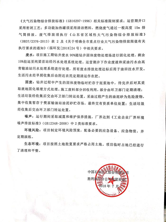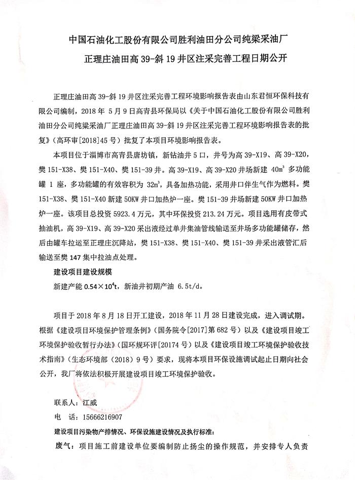 中國石油化工股份有限公司勝利油田分公司純梁采油廠正理莊油田高39-斜19井區注采完善工程日期公開